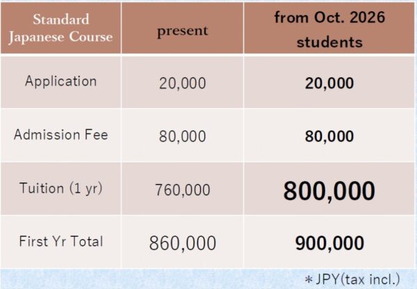 Please be advised that we will revise the tuition of our academies from October, 2026.